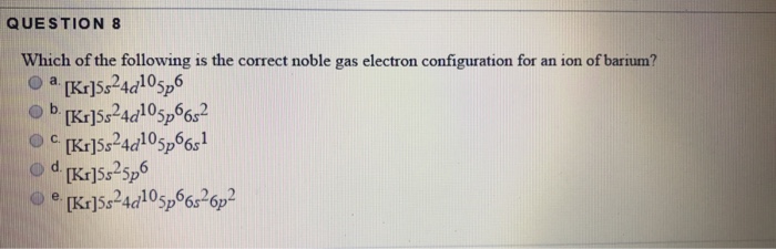 Solved When Writing The Noble Gas Configuration For Barium Chegg Com