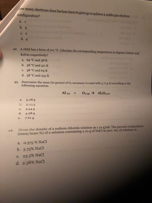 Solved Ow Many Electrons Does Barium Have To Give Up To Chegg Com
